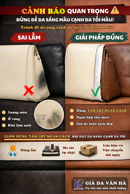 🌿 Giả Da Vân Hà luôn khuyến nghị khách hàng và đối tác chú ý đến cách bảo quản đúng chuẩn để sản phẩm da giữ được vẻ đẹp như mới theo thời gian.